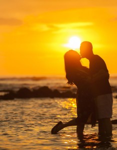 海边夕阳下拥吻的情侣浪漫高清电脑锁屏屏保变