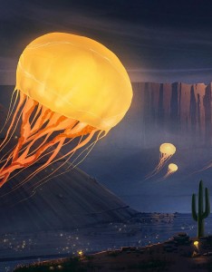创意插画“飞在空中的水母”东京喰电脑壁纸高