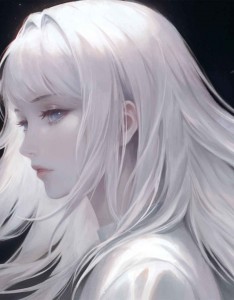 长发 白发石膏几何体素描图片 蓝眼睛 动漫女孩