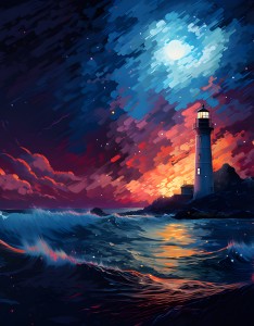 海景,灯塔,水,波浪,天空,云,泥船,风景壁纸