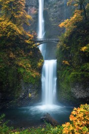 秋天风景 高山瀑布 桥风景手机桌面壁纸