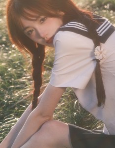 坐草地的美女 校服 双马尾辫 手机壁纸