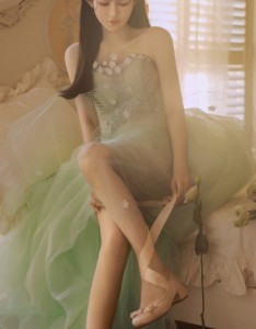 居家 公主 床 美女 绿色裙子 小清新 手机壁纸