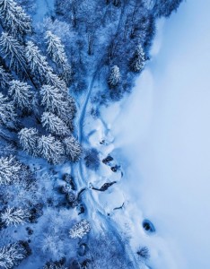 鸟瞰 雪景 树林 风景手机壁纸