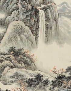 国风山水画风景 高山 瀑布 水墨画手机壁纸