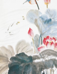 国风 荷花 鸟 鱼 水墨画手机壁纸