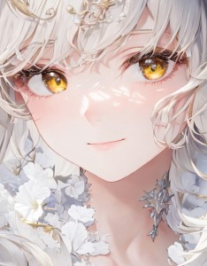 黄眼睛动漫女孩 白色头发 花 手机壁纸