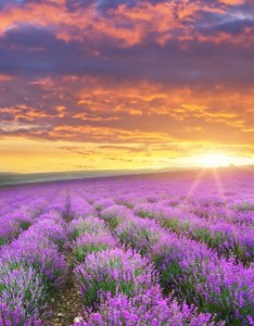 紫色薰衣草 天空 晚霞 云 日落 风景手机壁纸