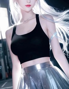 ai绘画 白色长头发 银光色裙子 好身材 美女手机壁纸