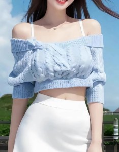 蓝色毛衣 白色短裙 白色裤袜美女 ai绘画手机壁纸