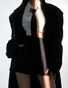黑色西装 白衬衫 黑色皮衣短裙 丝袜美腿 动漫美女手机壁纸