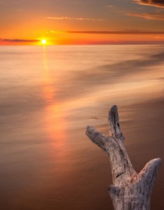 大海 天空 云 夕阳 木头 唯美风景壁纸