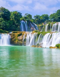 瀑布 蓝天白云 风景手机壁纸