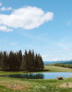 美丽自然风景 蓝天 白云 树林 水池 草地 手机壁纸
