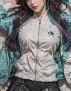 AI绘画 动漫美女 蓝色外套 黑色百褶裙 高清手机壁纸