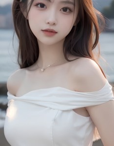 AI绘画| 海边美女 白色裙子动漫美女手机壁纸