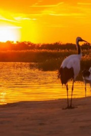 夕阳下凌空飞舞的仙鹤高清风景图片