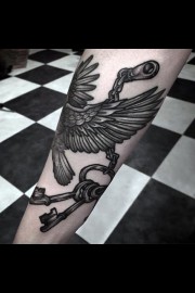 钥匙纹身图案 男生手臂上黑色的钥匙纹身图片