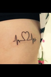 女生侧腰上黑色线条创意文艺心电图纹身图片