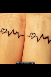 情侣手臂上黑色线条创意文艺心电图纹身图片