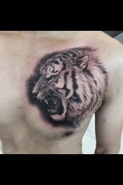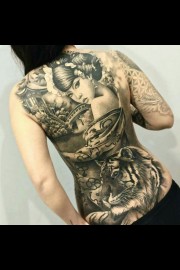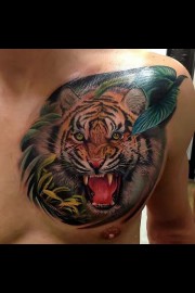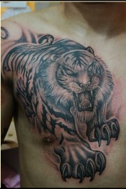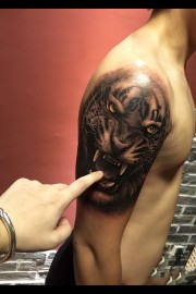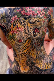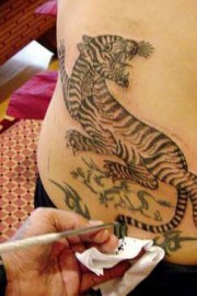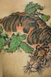 满背霸气咆哮的老虎花蕊彩绘纹身图案