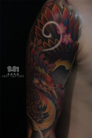 男人全臂凤凰彩色纹身作品欣赏