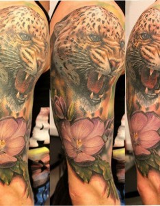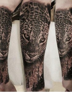豹子头纹身 男生手臂上写实的豹子头纹身图片