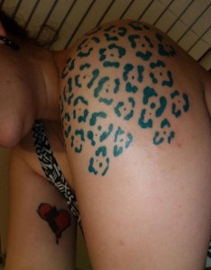 花豹纹身 女生大臂上黑色的豹纹纹身图片