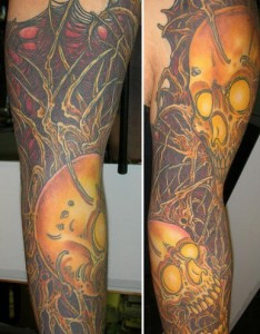 男生手臂上彩绘英文单词素材抽象线条心脏纹身图片