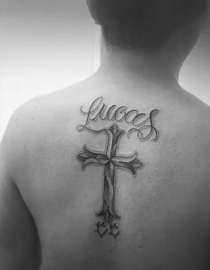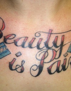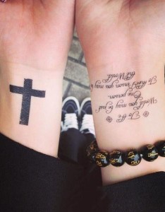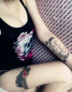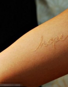 女生手臂上白色线条隐形花体有意义英文纹身图案