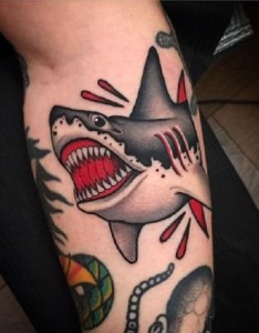 school 风格的鲨鱼纹身图案