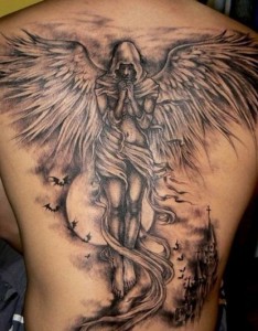 性感的欧美式后背天使纹身