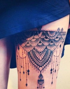性感撩人的大腿上的蕾丝纹身
