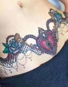 女性露脐帅气的剖腹产盖疤痕纹身作品图