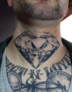 颈部神奇的逼真黑白钻石纹身图案