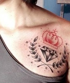 胸部黑色线条翅膀和逼真的钻石纹身图案