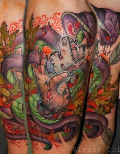手臂漫画风格的彩色蝙蝠侠和小丑纹身