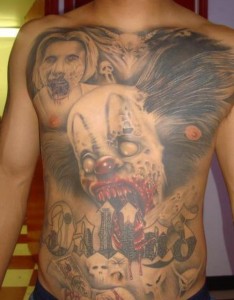 腹部可怕的僵尸小丑纹身图案