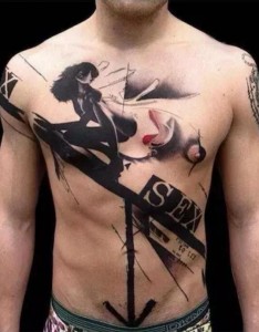 另类纹身图案 男生侧腰上黑色的人物纹身图片