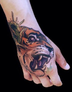 手背唐狮纹身 手背上传统的唐狮花手背纹身作品