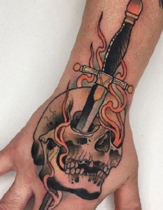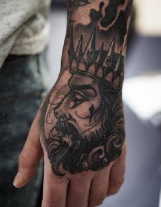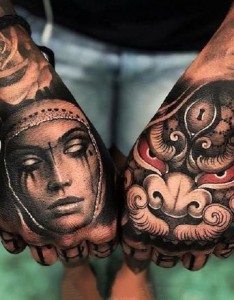 手背唐狮纹身 手背上传统的唐狮花手背纹身作品