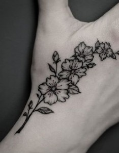 虎口花草纹身 手背上虎口位置的黑灰小花草纹身作品