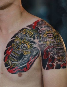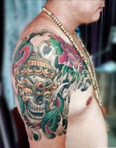 男性独特的嘎巴拉满背彩绘纹身图案