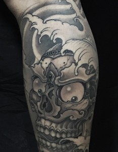 鬼神嘎巴拉腿部纹身