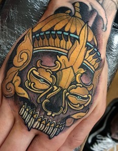 背部嘎巴拉皇冠彩色纹身图案,是小编为您精心挑选的纹身图片,希望您会喜欢,更多国内外精品纹身图片等尽在优美图库。