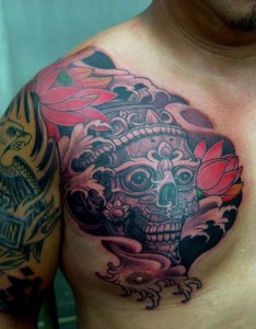 传统的嘎巴拉莲花手臂纹身