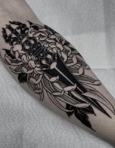 匕首刺青 黑色的小臂小刀匕首纹身图案