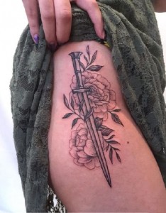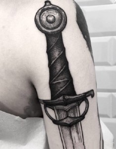 黑剑纹身 创意的黑色短剑匕首纹身图片