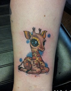 缤纷炫彩可爱的小长颈鹿纹身图案