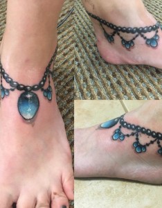 脚链纹身图片 女生脚踝上彩色的脚链纹身图片